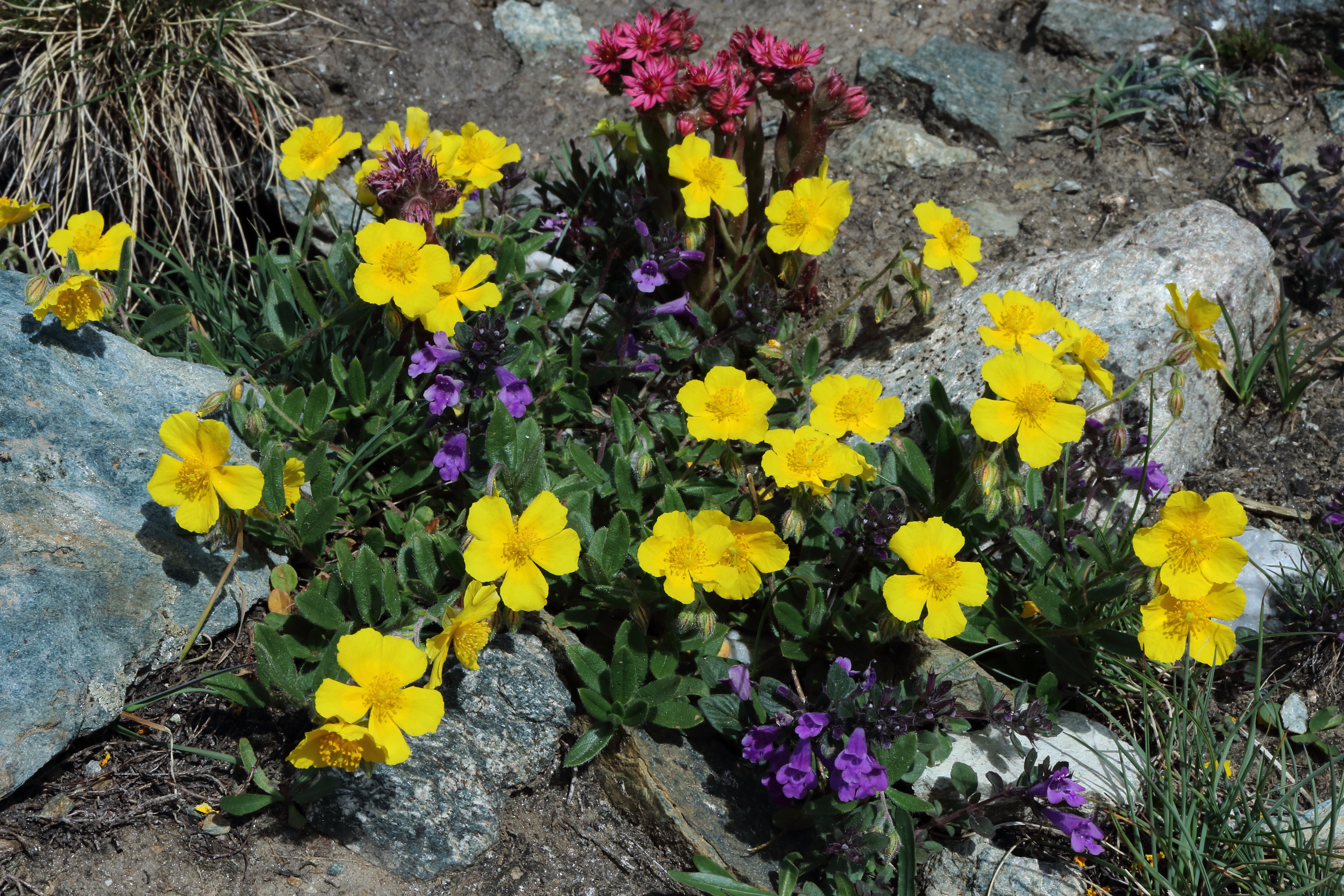 with Sempervivum arachnoideum (Cobweb House-leek) and Acinos alpinus (Alpine calamint)
