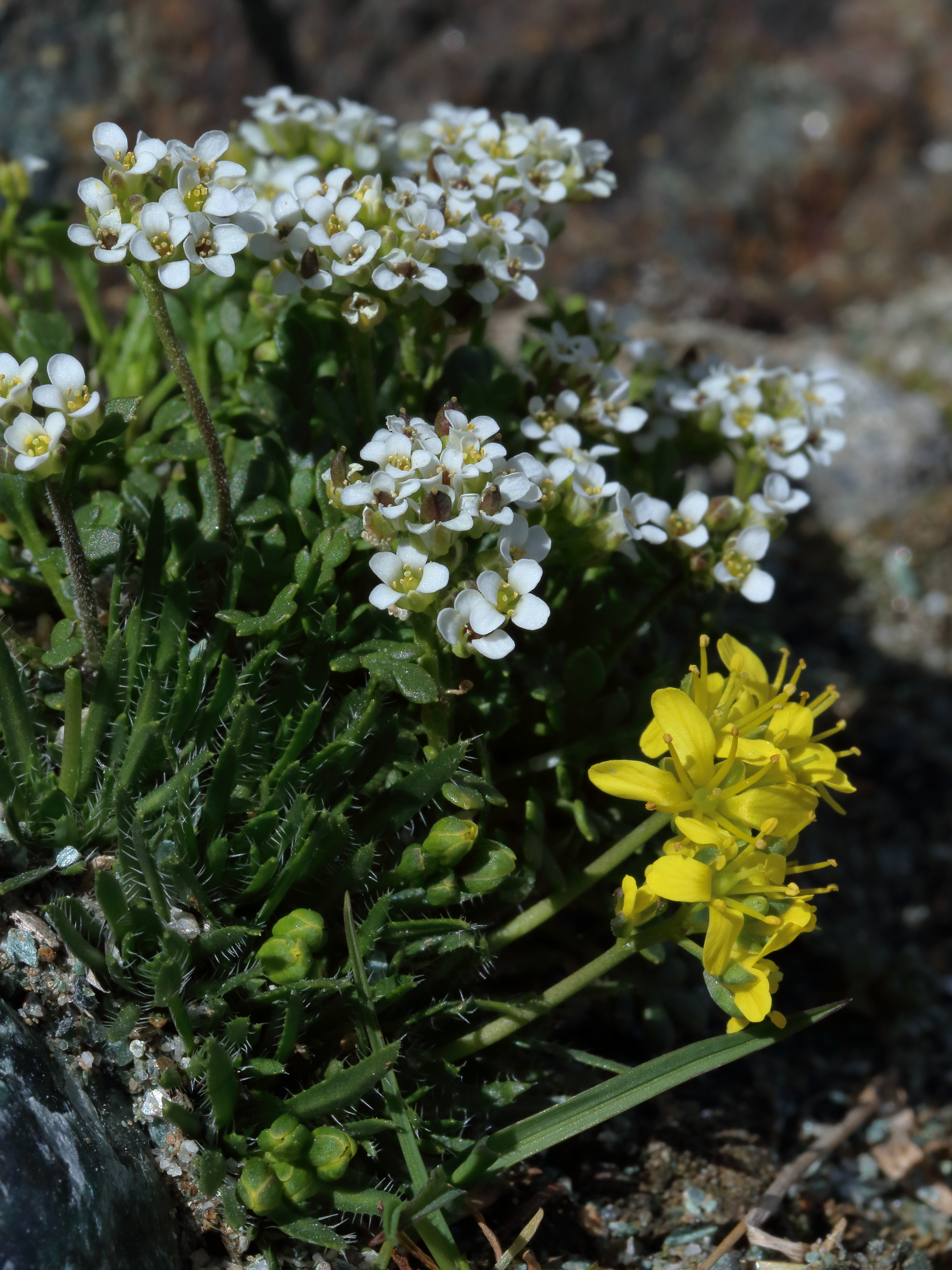 Pritzelago alpina (Alpine Hutchinsia) & Draba aizoides (Yellow Whitlowgrass)