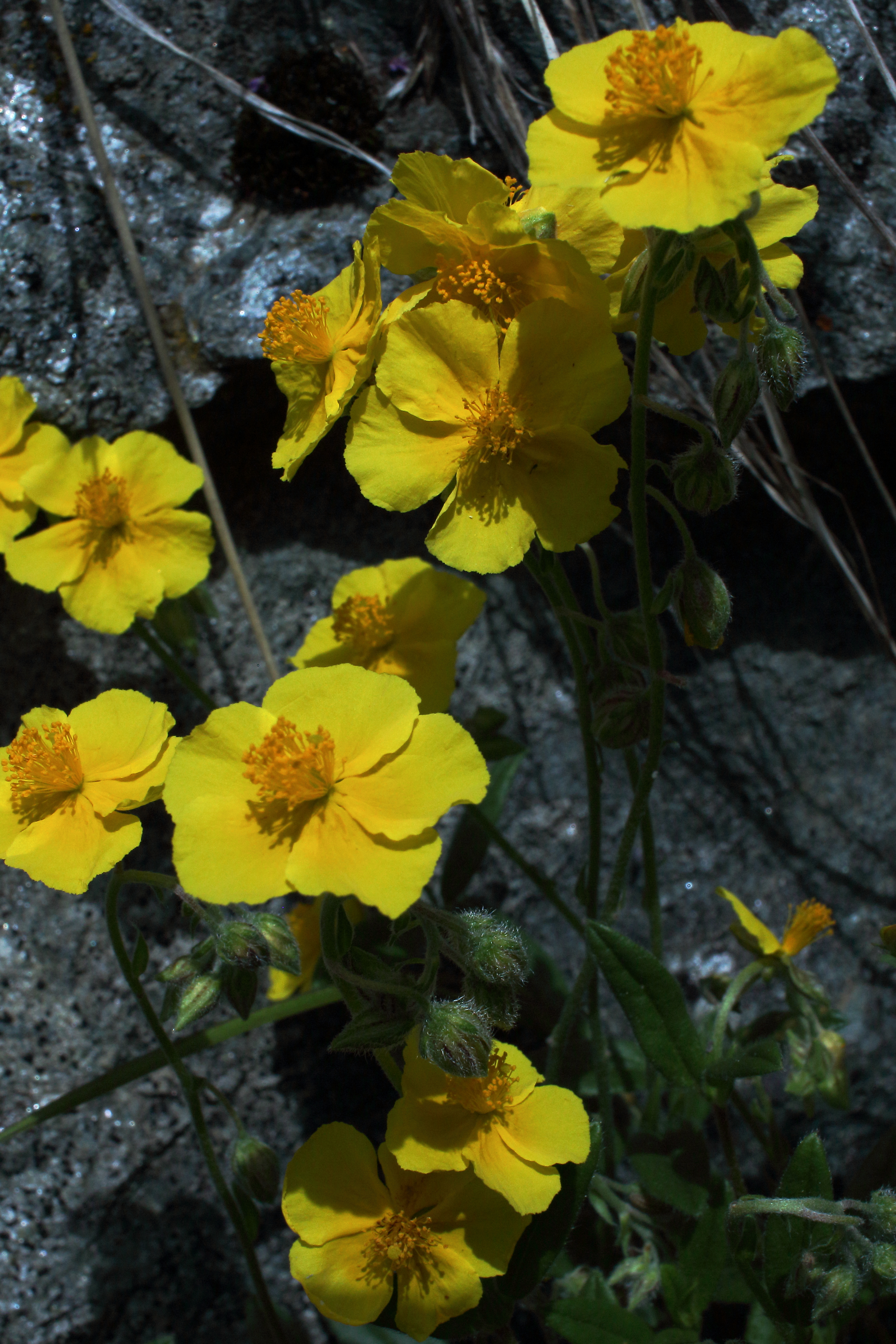Helianthemum nummularium ssp obscurum (Sombre Rock-rose)   Subspecies identified by many tiny stellate hairs on sepals